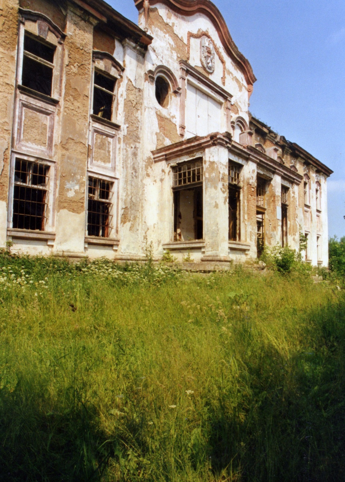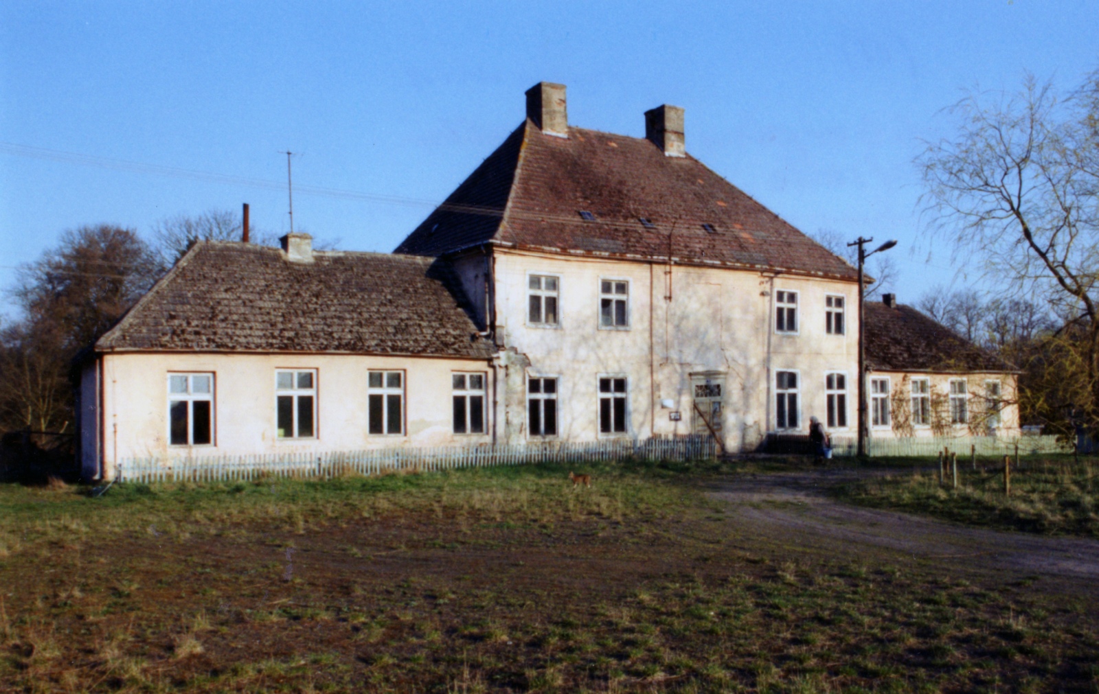 Das erhalten gebliebene Herrenhaus besteht aus zwei Trakten. Der ältere Part bzw. das Hauptgebäude (sieben Achsen, zweigeschossig, hohes Souterrain, Walmdach, vor dem hofseitigen Portal eine Terrasse mit Freitreppe, in der Terrassenmitte starker Altbaum) wurde nach allem Dafürhalten in der ersten Hälfte des 19. Jahrhunderts errichtet. Dieser nur wenig über das Mittelmaß hinausgehende Trakt verfügt an seiner südöstlichen Schmalseite über einen quergestellten Erweiterungsbau (4 × 3 Achsen, zweigeschossig, hohes Souterrain, Hofseite mit flachem Dreiecksgiebel, im Giebelfeld Rundfenster, über Erdgeschossfenster Dreiecksgiebelverdachungen, an Südostseite kleiner Anbau, davor Freitreppe), der wahrscheinlich in der zweiten Hälfte des 19. Jahrhunderts fertiggestellt wurde. Die nordwestliche Schmalseite des Hauses ist durch einen kurzen eingeschossigen Zwischentrakt mit der Giebelfront eines Wohn- und Ökonomiegebäudes (14 × 5 Achsen, zweigeschossig, Findlingsmauerwerk) verbunden. Sowohl das oben genannte Gebäude als auch das Herrenhaus weisen heute (2009) ein relativ gepflegtes Äußeres auf. Wie es scheint, gehören sie zur Zeit einem Nachfolgebetrieb des um 1990 aufgelösten polnischen Staatsgutes.