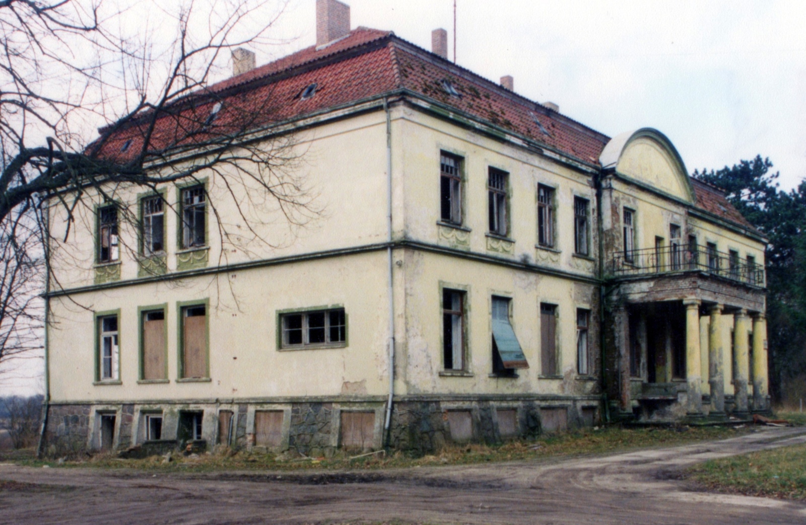 1. Barnow (Barnowo), Herrenhaus, Ostseite, April 1998; Foto: D. Schnell