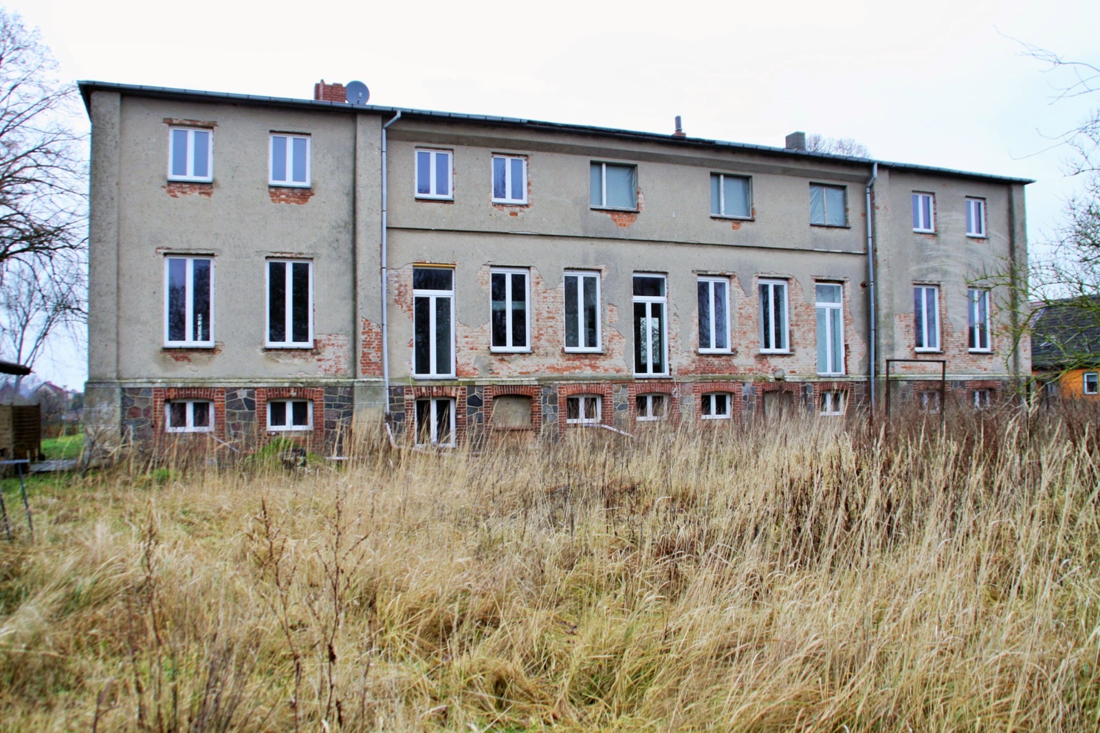 Wie es scheint, wurde das ehemals herrschaftliche Gebäude in Bassin zu DDR-Zeiten nicht nur aufgestockt und mit einem durchgehenden einheitlichen Dach versehen, sondern auch seine Fensterverdachungen und Türmchen mussten dem damaligen Zeitgeist weichen.