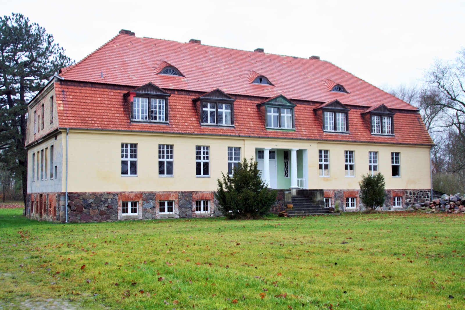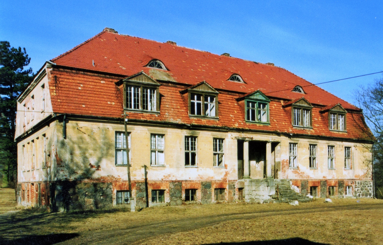 Das auf uns überkommene Herrenhaus (Putzbau von 9 × 3 Achsen, eingeschossig, Souterrain aus gespaltenen Findlingen, Mansarddach mit Schopf, Fledermaus- und Giebelgauben) ist an seiner Nordost- beziehungsweise Hofseite am Eingangsbereich loggiaartig nach hinten eingerückt, mit zwei Säulen toskanischer Ordnung versehen und wahrscheinlich um 1850 errichtet worden. Bis in das Jahr 1996 stand es nicht nur leer, sondern es wies auch erste Verfallserscheinungen auf.