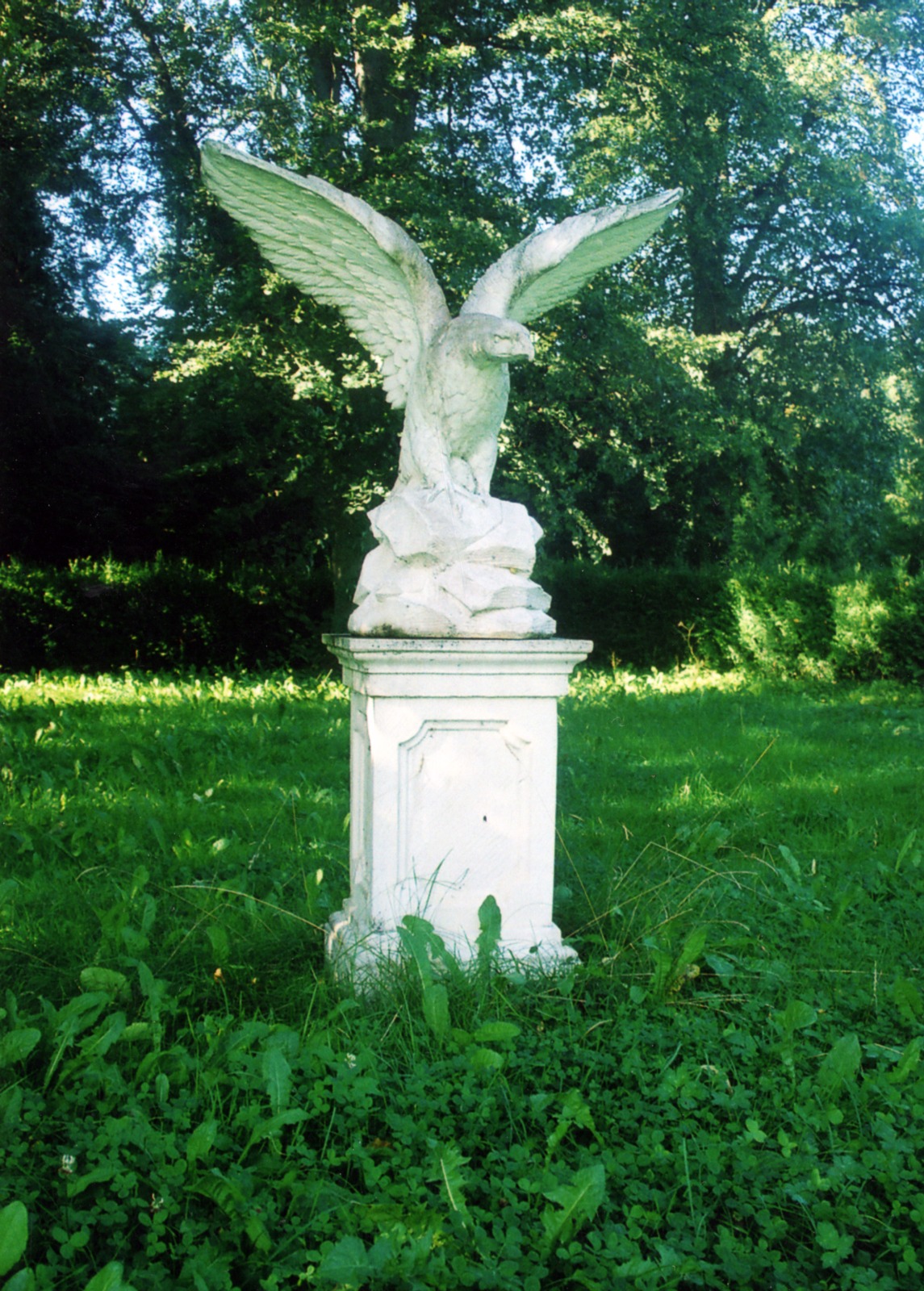Von der kleinen historischen Parkanlage mit ihren straßennahen Teichen ist nur noch wenig auf uns überkommen. Im Gegensatz dazu haben zwei baufällige Ökonomiegebäude aus der Vorkriegsära die Zeiten überdauert. Da sie aber so gut wie nicht mehr genutzt werden, ist ihr Verfall vorprogrammiert.