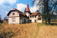 - Dwasieden, abgängiges Schloss, südwestlicher Pavillon von Süden, Mai 1996; Foto: D. Schnell