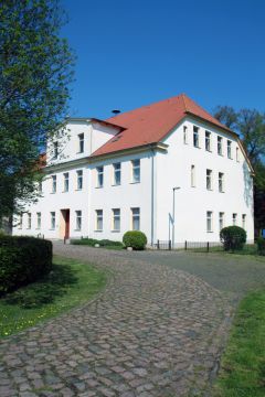 Das schon seit Jahrzehnten von der Bildfläche verschwundene Herrenhaus (Streichrichtung Südwest–Nordost, 11 × 3 Achsen, zweigeschossig, hohes Souterrain, unter Traufe Konsolreihe, Walmdach, an Park- beziehungsweise Südostseite risalitartiger Anbau mit Dachgarten, hinter Letzterem dreiachsiges Zwerchhaus, an Nordostseite Veranda) wurde dem äußeren Anschein nach in der zweiten Hälfte des 19. Jahrhunderts errichtet.[2]