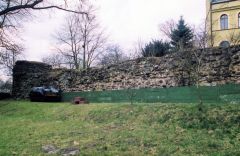 - Tychow (Tychowo), straßenseitiges Parktor von Südosten; Foto: D. Schnell, April 2003