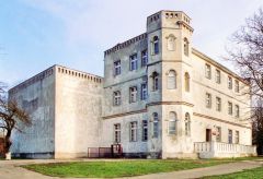 - Meseritz (Miédzyrzecze): mehrteiliger Gebäudekomplex, wahrscheinlich in u-förmiger Anordnung, als gesichert gilt: zweigeschossiges Hauptgebäude von 7 Achsen, über Traufe hohes Walmdach, an westlicher Schmalseite in Verlängerung der Hauslängsachse schmaler eingeschossiger Zwischentrakt von 4 Achsen, daran anschließend ein nach Norden ausgerichteter Flügel, Hauptgebäude wohl noch aus dem 18. Jahrhundert stammend; Ortslage: 17 Kilometer nordwestlich Schivelbein[24]